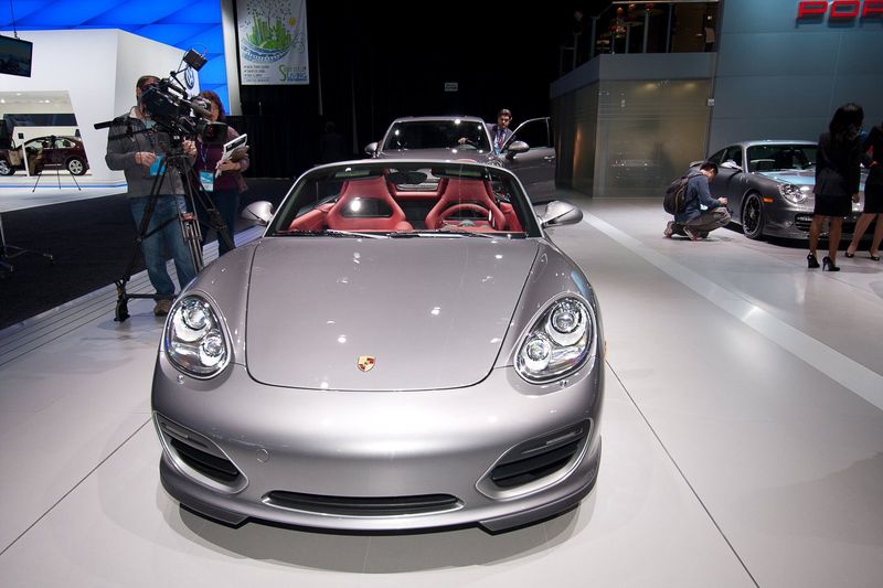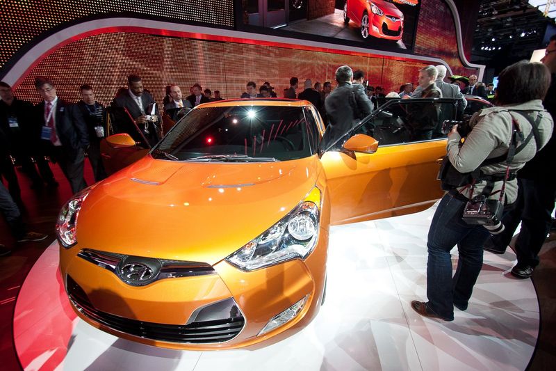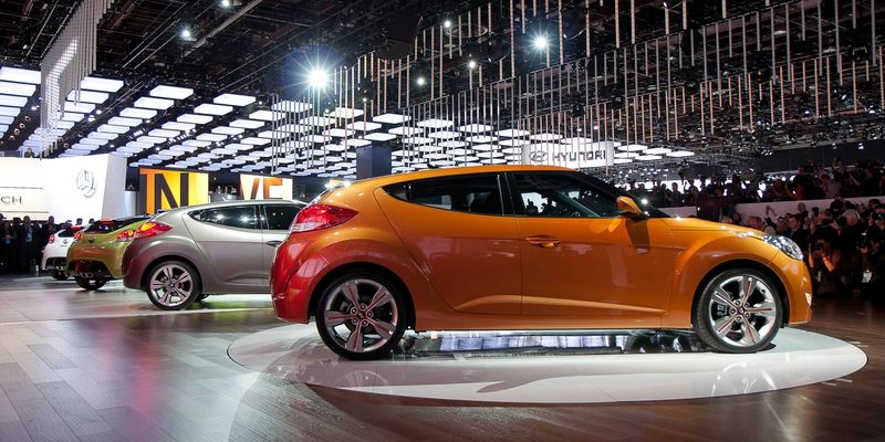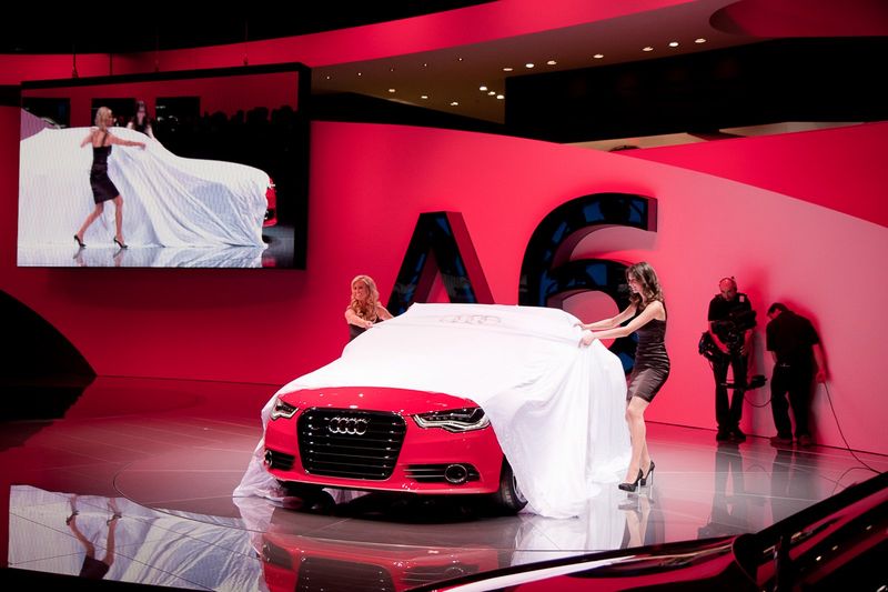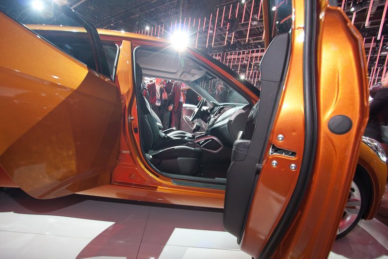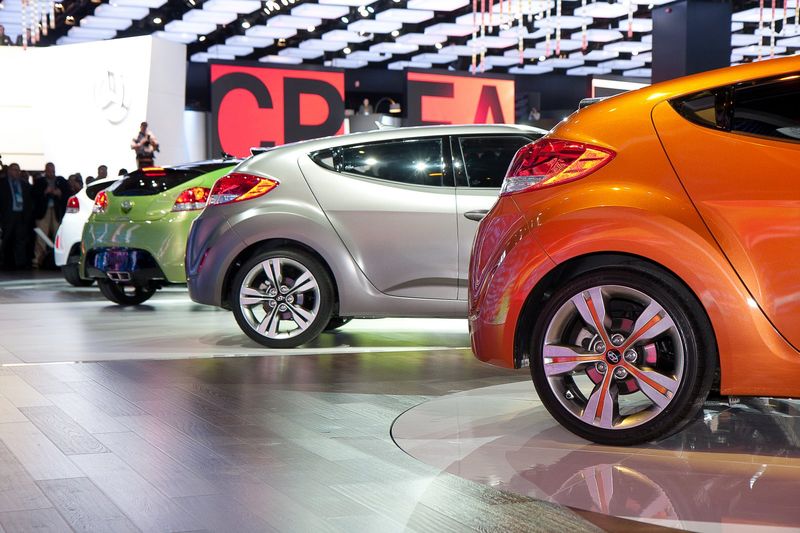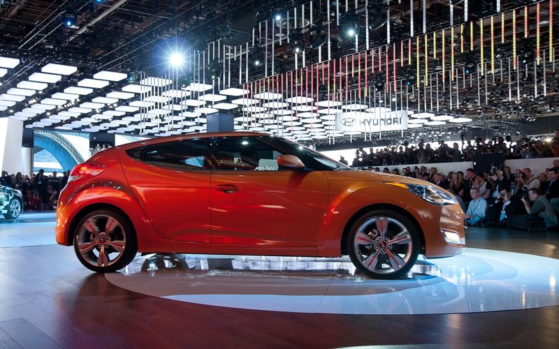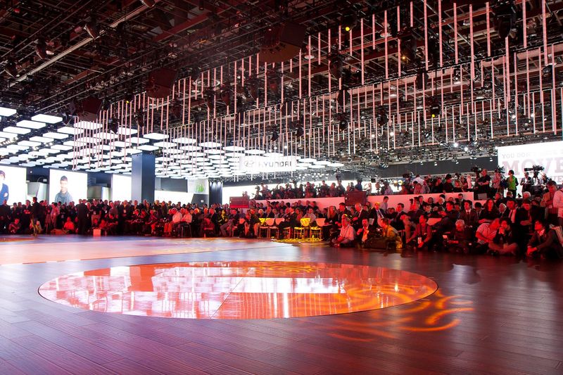 Отримавши іменний бейджик на шнурочку і червоний браслетик на руку, можна починати роботу. Розклад роботи шоу чітко розписаний організаторами щохвилинно – сніданок коло стенду Порше, урочисте відкриття, а далі кожна фірма має 25-30 хвилин на презентацію своєї продукції на колесах. Презентації проходять по стандартному сценарію – на великих сценах власного дизайну провідні спеціалісти чи генеральні менеджери представлють новинки від своїх фірм. Багатші фірми то все знімають на відео, яке одразу транслюється на екранах сцени. Потім гучна музика, дим, яскраве і кольорове світло – і виїжджає якесь новеньке чудо. Якщо в минулі роки концепт кари не представляли хіба що найбідніші фірми, то в ці роки концептуальні розробки є великою рідкістю. Тому і корейський автопром приємно дивує Хюндай представив і концепт, і новинку – хетчбек Veloster, дуже приємну машинку. Вона не традиційно асиметрична – зі сторони водія тільки одна дверця, коли з другої сторони їх двоє. І ще задні дверці. Дуже цікава машинка, стартова ціна якої в Штатах буде починатись з 17 тис доларів.