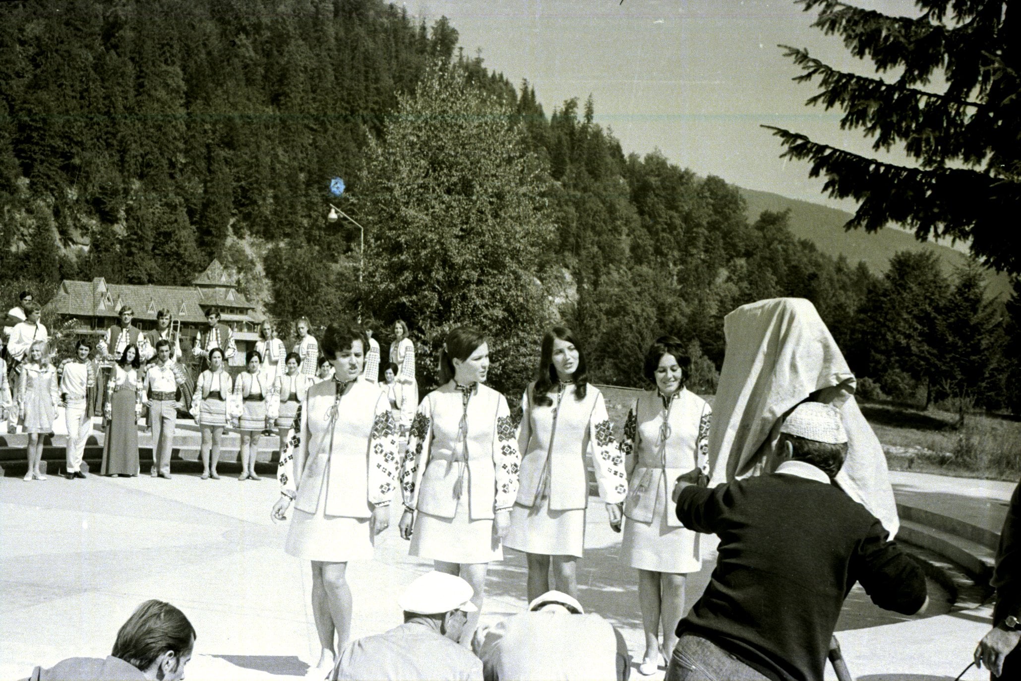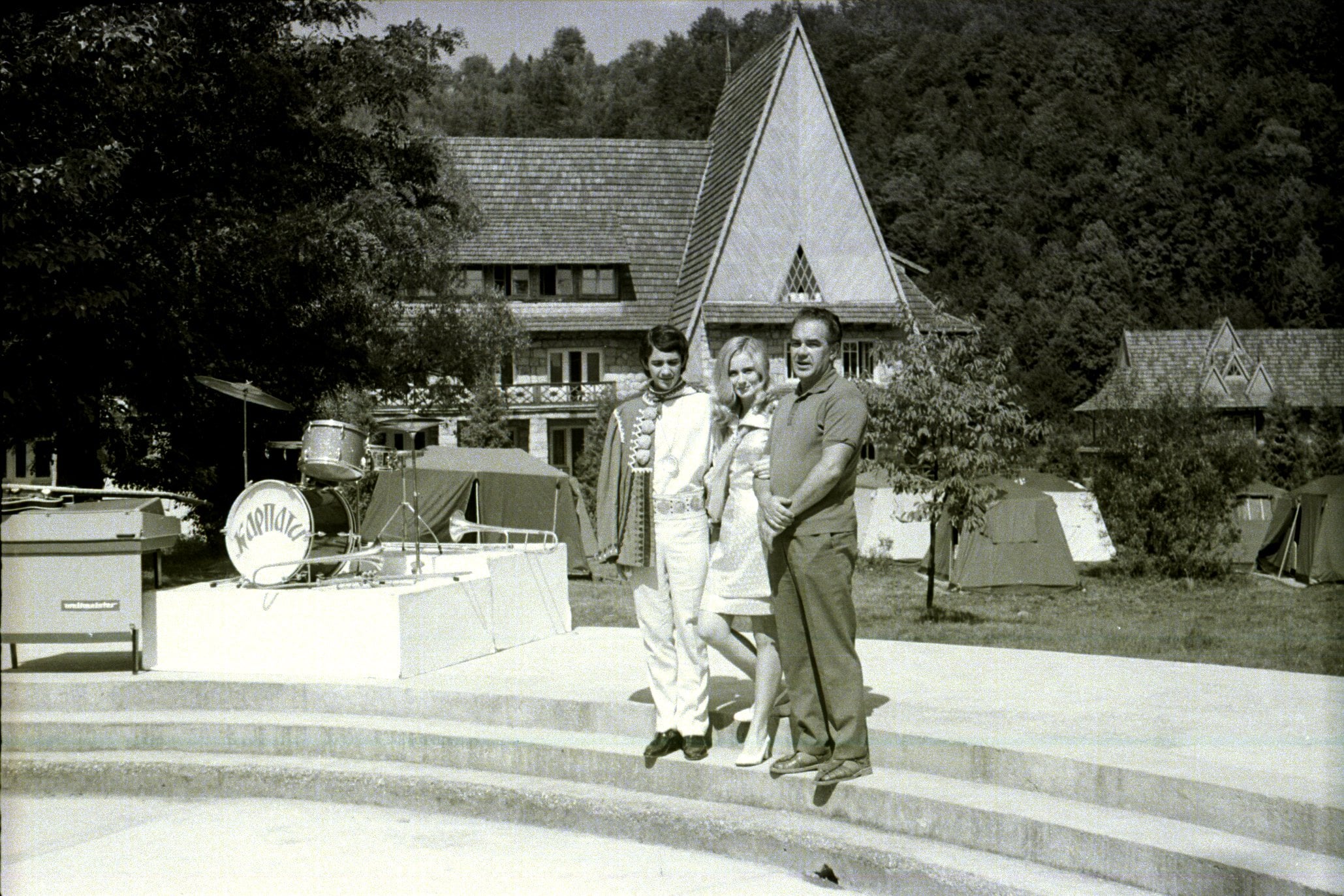 – Назарій Яремчук, Раїса Кольца та режисер фільму Роман Олексів під час зйомок,