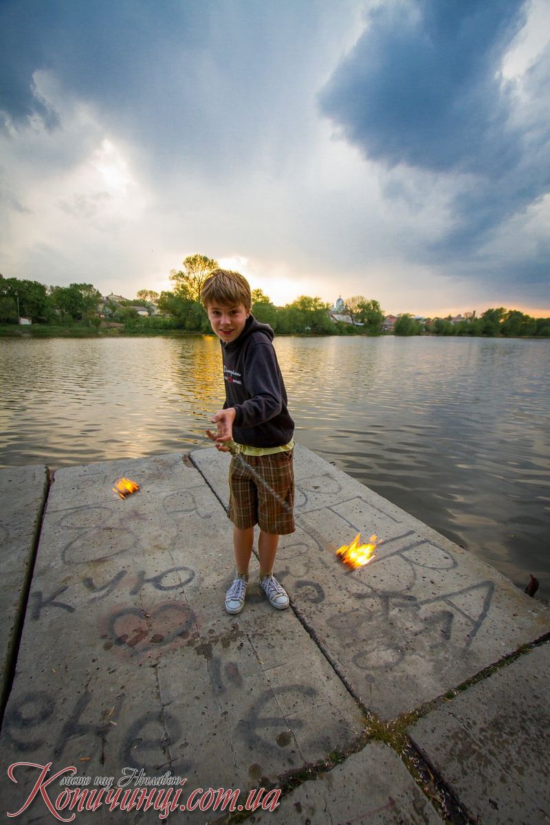 Зразу виникає ідея проводити це, хоч і маленьке поки що, шоу з вогнями регулярно, різноманітніше, змістовніше, безпечніше і під наглядом дорослих. Тим більше, що є усі передумови для цього – літо, вечірнє озеро з його тихим плесом, креативна молодь. А глядачі вже підтягнуться. Так що прошу зголошуватися усіх, кому сподобалась ідея проведення регулярного вогняного шоу над озером, яке може зацівити людей з інших міст країни. Все в наших і ваших руках! Чекаємо на ваші ідеї і пропозиції, гру на музичних інструментах і пісні.