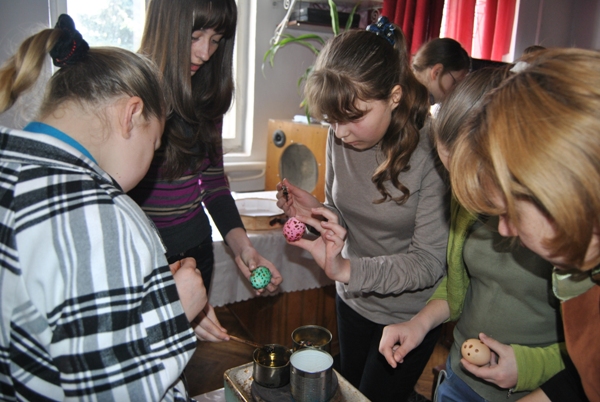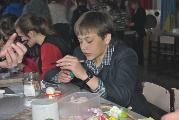 Сьогодні, 21 квітня в школі-гімназії відбувся майстер клас по писанкарству. Організатором цього заходу виступив учнівський уряд на чолі з педагогом-організатором Переймою Тетяною Володимирівною. До участі були задіяні учні 5-11 класів, а майстром в цьому занятті була Козак Людмила Іванівна, котра керує гуртком "Дизайн-флорист". Учням настільки сподобалось заняття, що відірвати від розпису писанок їх було практично неможливо.