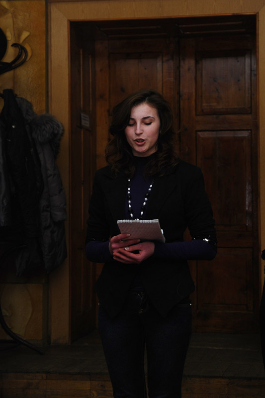 На згадку про «третю кав’ярню»( як сказав пан Тарабій) Руслана Мирославівна подарувала кожному учаснику літературних читань маленьку «захалявну» книжечку, яку повинен мати, на її думку, кожен поет. Можливо, такі ж потаємні книжки з’являться і у тих, хто у кав’ярні пані Руслани вперше помітив, що йому посміхнулася муза. Я думаю, перший рядок у тих книжечках, мабуть, затремтить у полум’ї свічки ніжним силуетом танцівниці, розіллється музикою на папері і нестерпно смачно, чарівно запахне кавою.