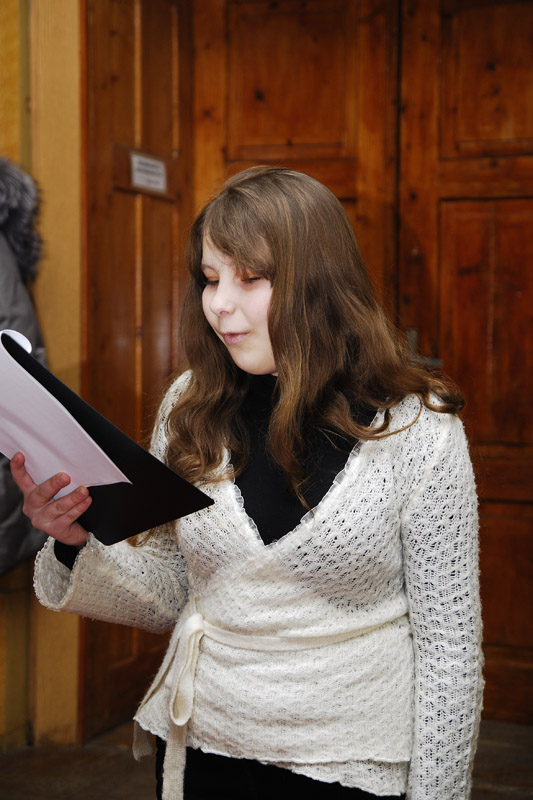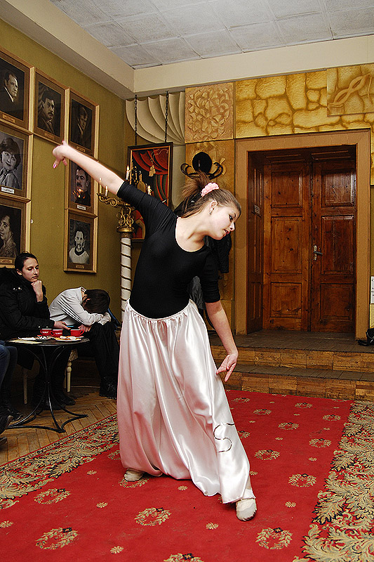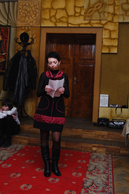 У антракті між віршами – танець. Ніжною, схожою на маленьку музу чи ангела, була Ліда Болай, учасниця хореографічного ансамблю «Оксамит». Дівчина танцювала… Музика звучала як елегія. Біла спідничка, як дзвоник лілеї, кружляла між столиками. Здавалося, відчуваєш, як душа поезії проходить крізь життя – від ангелів, що лопотіли крилами над дитячими снами у віршах пані Віри, до ангелів, які прийшли покликати у незвідані світи у поезіях Валентини Володимирівни Гондз.