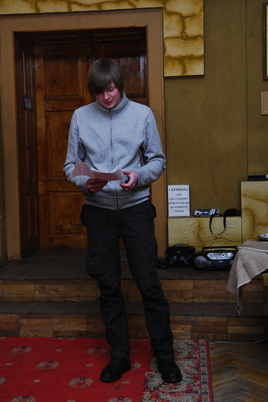 Отож, 20 березня, напередодні святкування Всесвітнього дня поезії літературний проект Руслани Савки «Музей запрошує…на каву» знову скликав тих, хто не байдужий до художнього слова. Продовжуючи традицію живого звучання поетичного слова, цей проект поставив собі за мету не тільки об’єднувати однодумців, популяризувати твори відомих авторів, а й допомогти поетам-початківцям зробити перший крок до свого читача.. Гості березневої мистецької «кав’ярні» переважно не мають збірок, не друкуються у пресі, пишуть для рідних і близьких, прагнуть у слові знайти відраду для душі. Багатьом з них було так не просто відкрити для сторонніх очей те сокровенне почуття, що застигло у слові і зродило вірш.