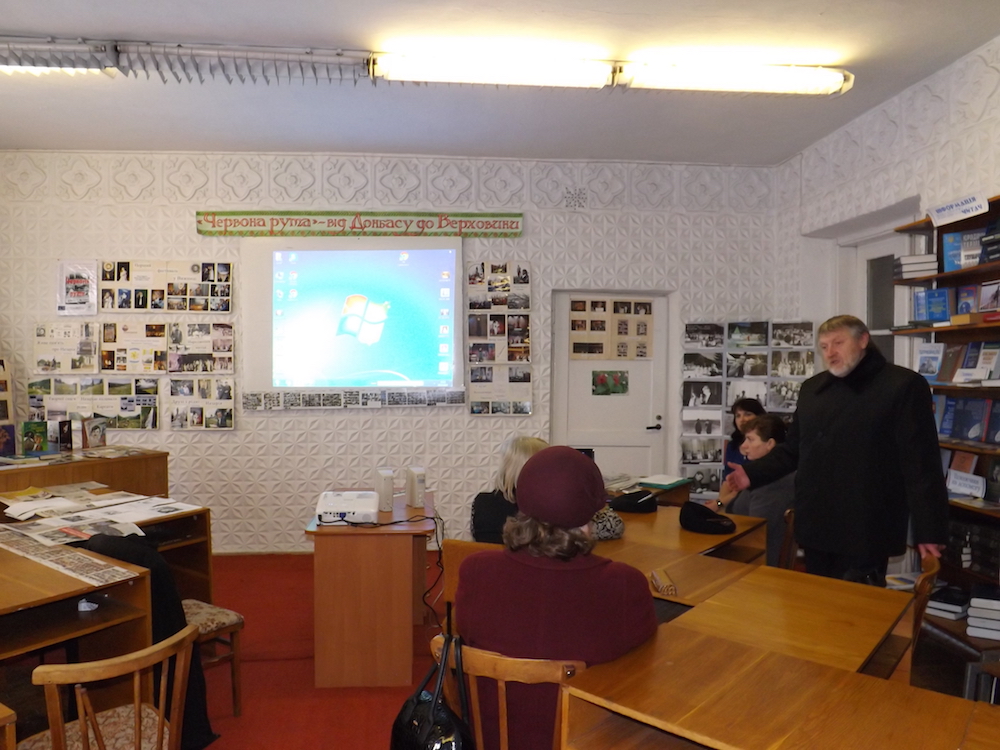 Присутні мали можливість переглянути світлини із фотовиставки «Червона рута» від Донецька до Верховини», яка в минулому році побувала у 17 містах України, зокрема в Зоні АТО (автор Роман Островський), почути та побачити відеосюжети каналів телебачення, про геніального композитора, також дізналися, кому була приурочена пісня «Червона рута».