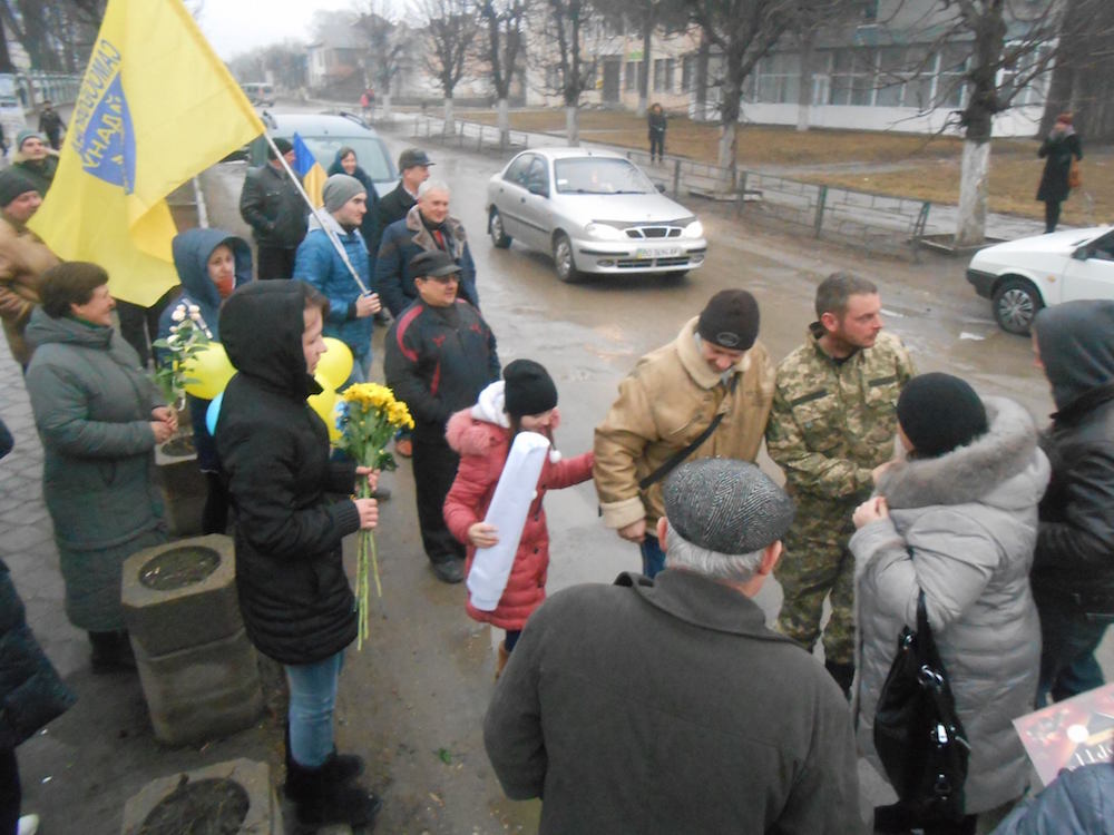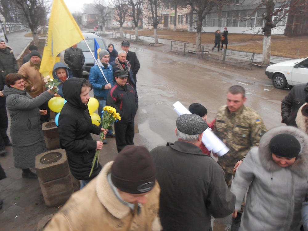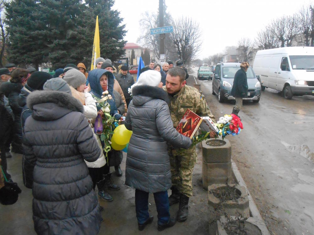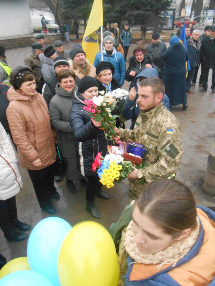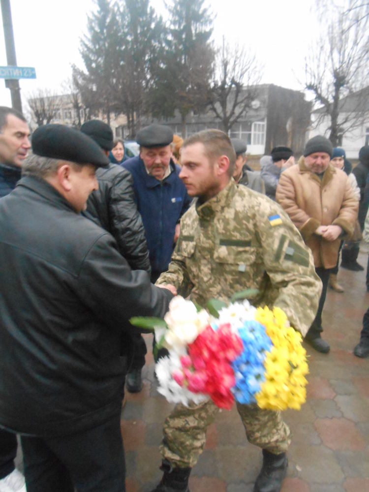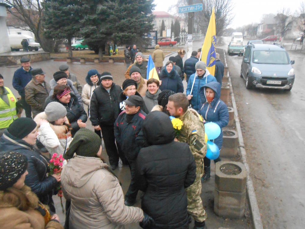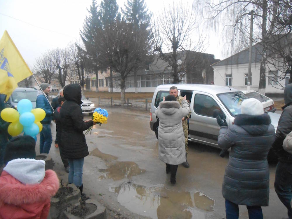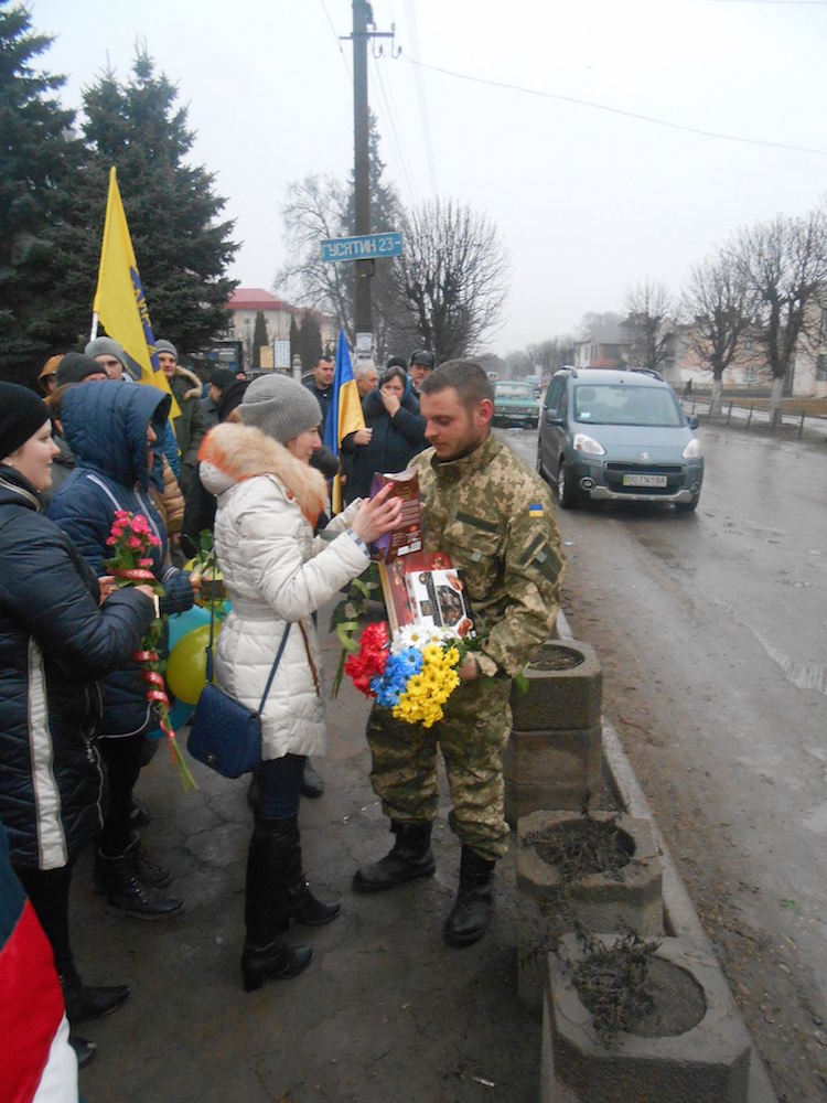 Сьогодні о 7-50 годині ранку місто Копичинці зустрічало свого героя, воїна 128-ої ОГПМ Бригади Олега Бейзора, який більше 8 місяців був у зоні АТО і вийшов живим з Дебальцево. Ще з ночі люди зібралися біля ЦКіД, до ранку підходили жінки і діти з квітами, плакатом і жовто-блакитними кульками. Коли прибула машина і Олег вийшов, люди не стримували сліз радості і скандували: "Героям Слава! Слава! Слава! Герой! Герой! Герой!". Кожен хотів привітати і обняти воїна-земляка. А проводжали солдата додому вигуками: "Дякуємо! Дякуємо! Дякуємо!"