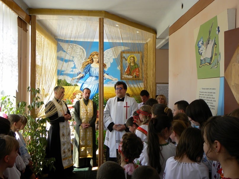Нещодавно в школі №2 нашого міста відбулось відкриття духовного куточку. В посвяченні брали участь отці майже всіх парафій нашого міста. Ініціатором створення була директор школи Хорощак Н.С. Покровителем даного куточку вибрали наймолодшого учня Ісуса Христа Івана Богослова.