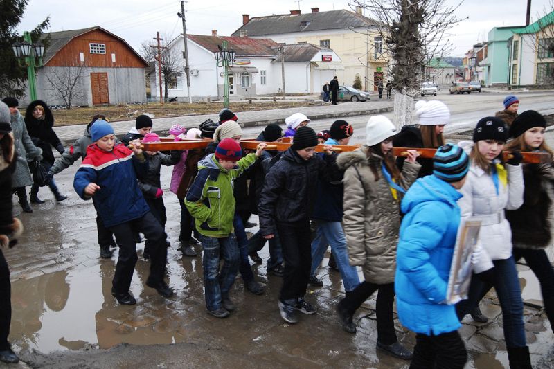 У неділю, 20 березня, відбулася Хресна Дорога по місту Копичинці. Незважаючи на те,що надворі було трішки холодно, усі копичинчани згуртувались – було близько 500 людей. Хід розпочався від церкви св. о. Миколая. Були присутні священнослужителі, а саме: о. Ігор, о. Руслан, о. Любомир, о. Василь, о. Юрій, о. Ярослав, о. Юстиніан. Отець Юстиніан прибув у наше місто з метою просвітницької роботи у часі Великого Посту. Він належить Чину Братів Менших (францискани греко-католики). Від п’ятниці до неділі відбувались реколекції (розваження) над Страстями Ісуса.