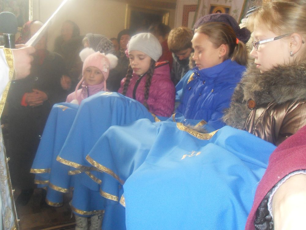 Провідник Марійської Дружини о.д-р. Руслан Корнят вручив всім медалики і голубі накидки як символи посвяти Матері Божій і побажав, щоби їхнє життя було прикладом для інших дітей, а Богородиця – важливим орієнтиром у їхньому молодечому житті.