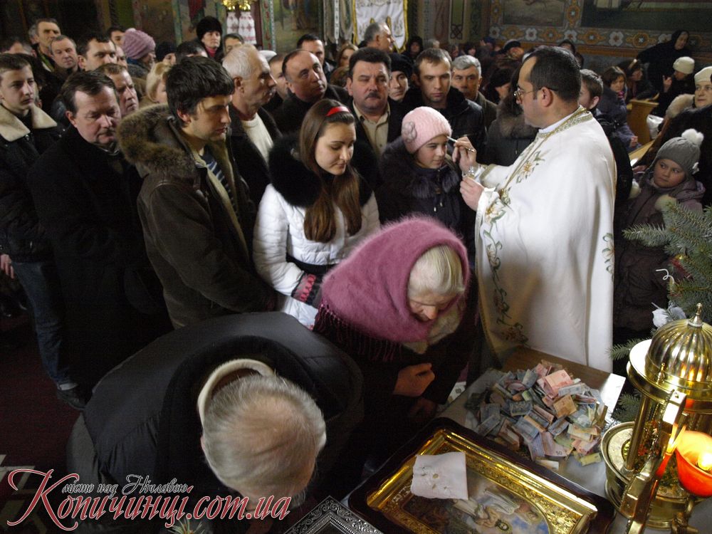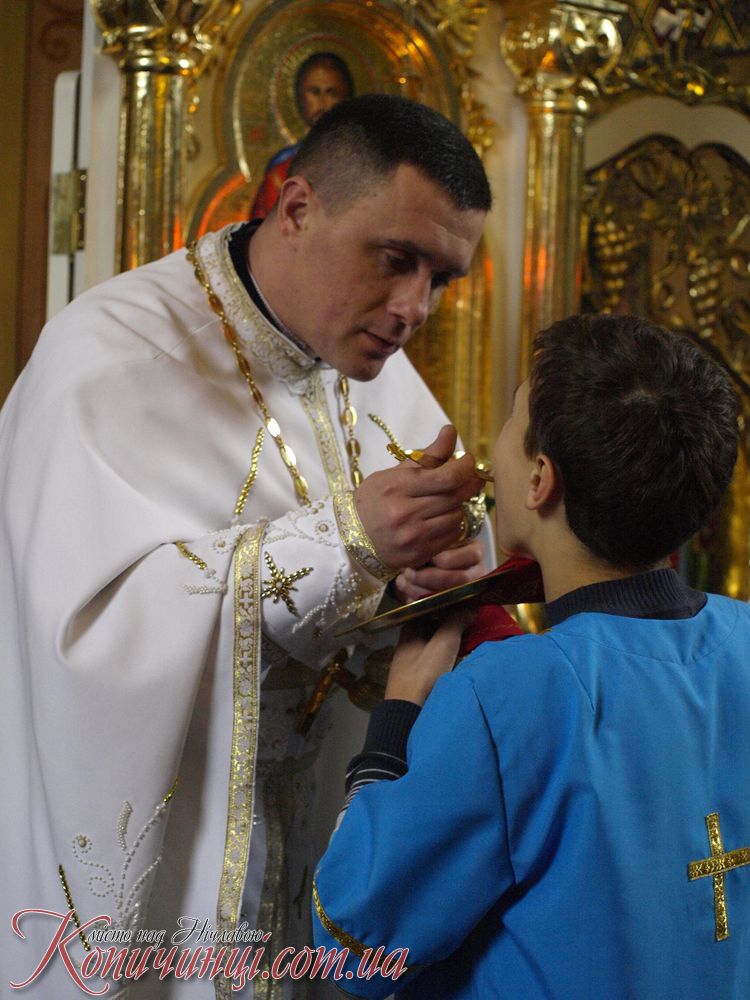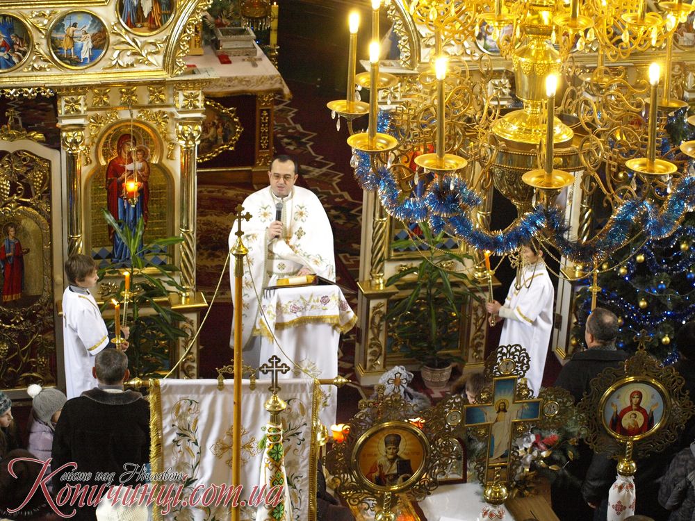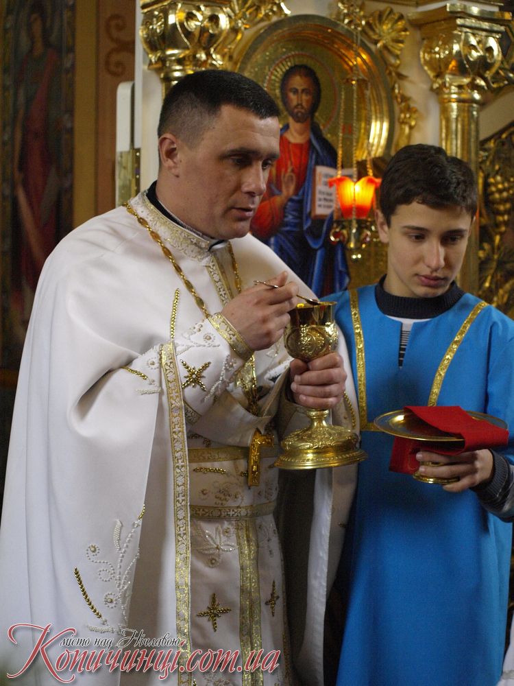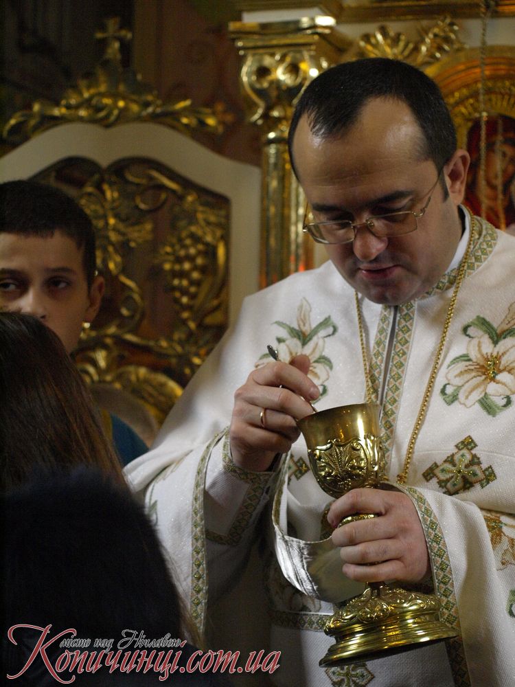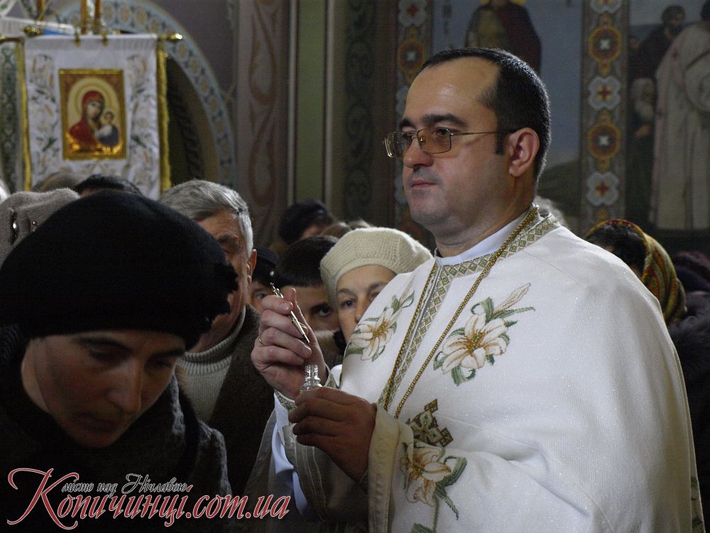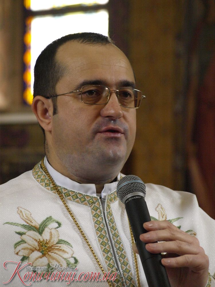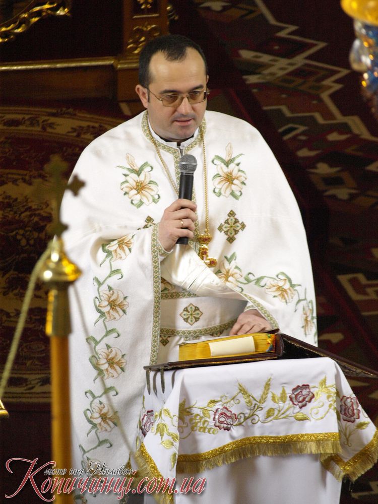 Мощі до поклоніння в місто Копичинці на запрошення настоятеля о. Ігора Середи привіз ректор ВИЩОЇ Духовної семінарії отець Іван Римар разом з братами семінаристами він звернувся з словом проповіді.