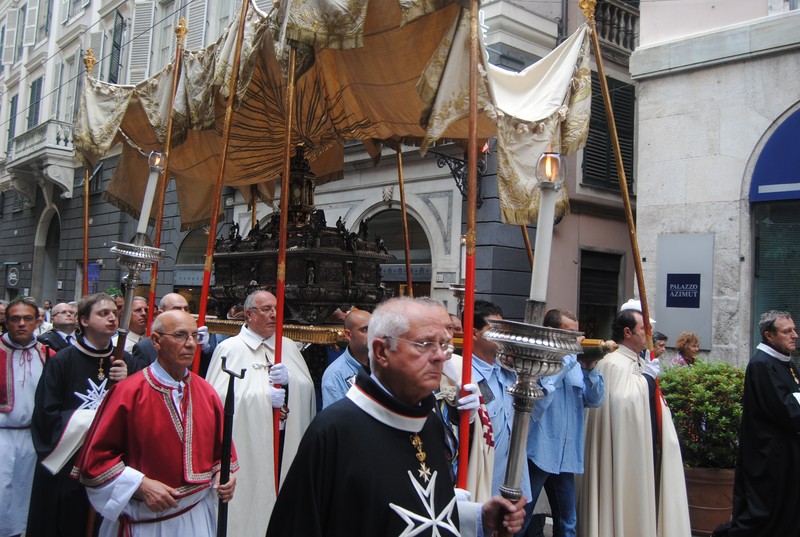 У церкві San Siro, у першому кафедральному соборі, відбулась перша зустріч чільників двох Церков, адже кардинал Баняско є також Головою Єпископської Конференції Італії. У Бослуженні Вечірня об’єдналось все духовенство і монашество Архиєпархії Генуї, представники влади та вірні парафіяльних церков міста. Відтак розпочався піший хід із Найсвятішими Тайнами вулицями міста. В такому Богослуженні міста вперше брав участь єпископ української Церкви. «Corpus Domini» – не є богослужінням візантійської традиції і тому участь єпископа східного обряду було свідченням відкритості та духовної єдності перед єдиним Спасителем, якому виявляється слава, честь і поклоніння у різних формах та обрядах.
