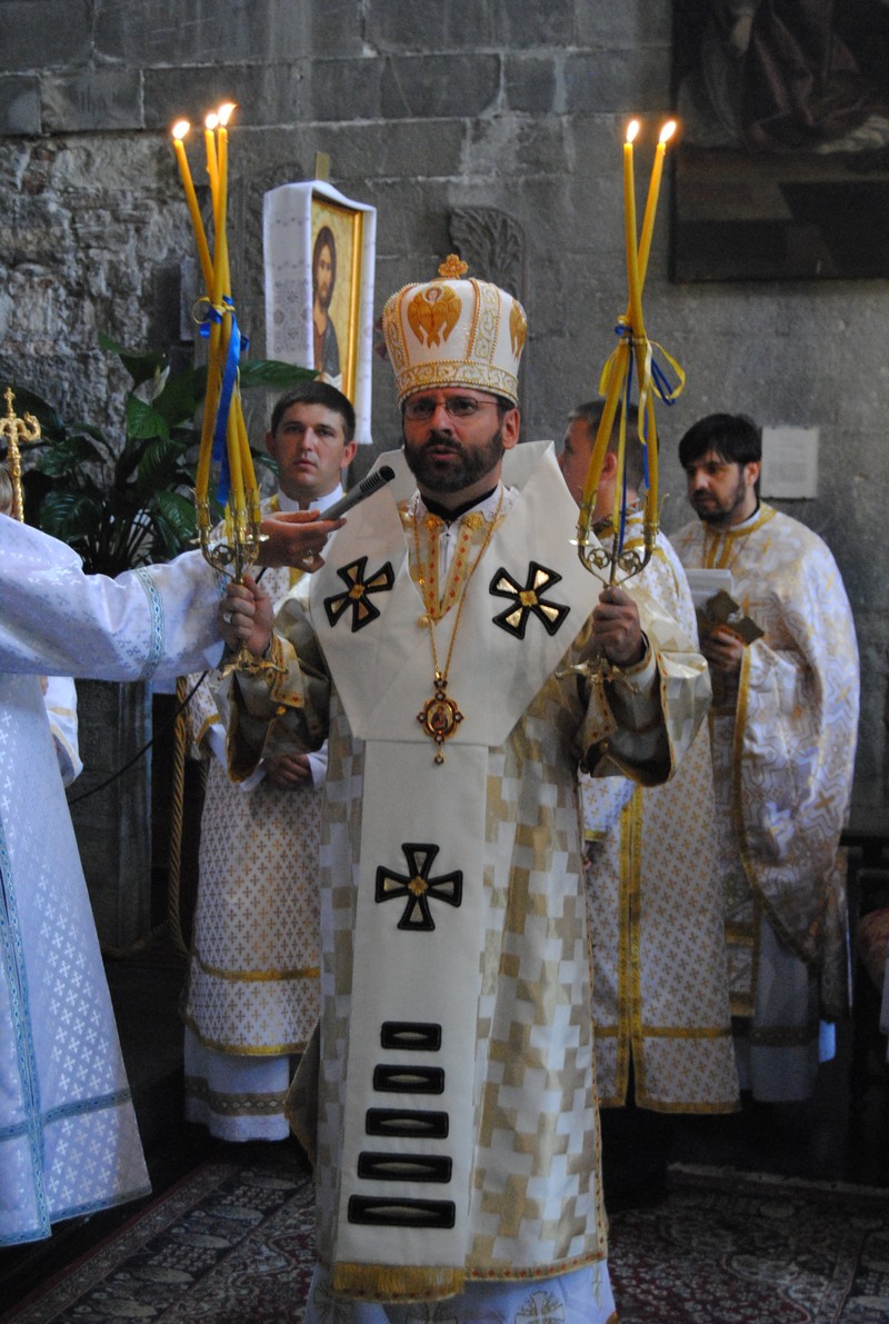 У цей сонячний день, під мелодійний бій дзвонів зустрічали патріарха УГКЦ Генеральний консул Андрій Картиш та консул Руслан Фуфалько із м.Мілан та почесний консул Камілло Бассі з м.Генуя. Ціла громада на сходах зустрічала із співом «Будь ім’я Господнє» свого духовного Батька.