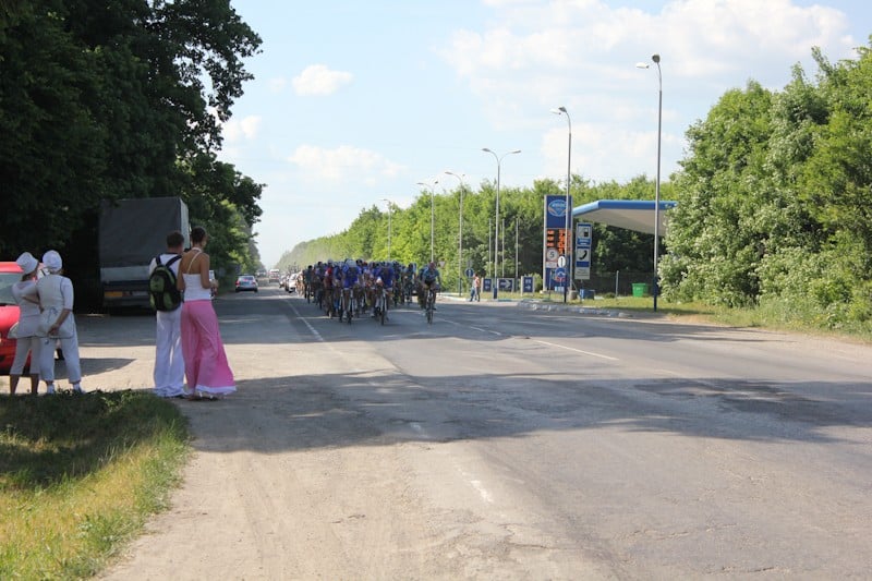 Вся колона велосипедистів умовно розділилась на 3 частини – лідери (їх було невелика група), величезна середня частина учасників, і також невелика група котра їхала в кінці.