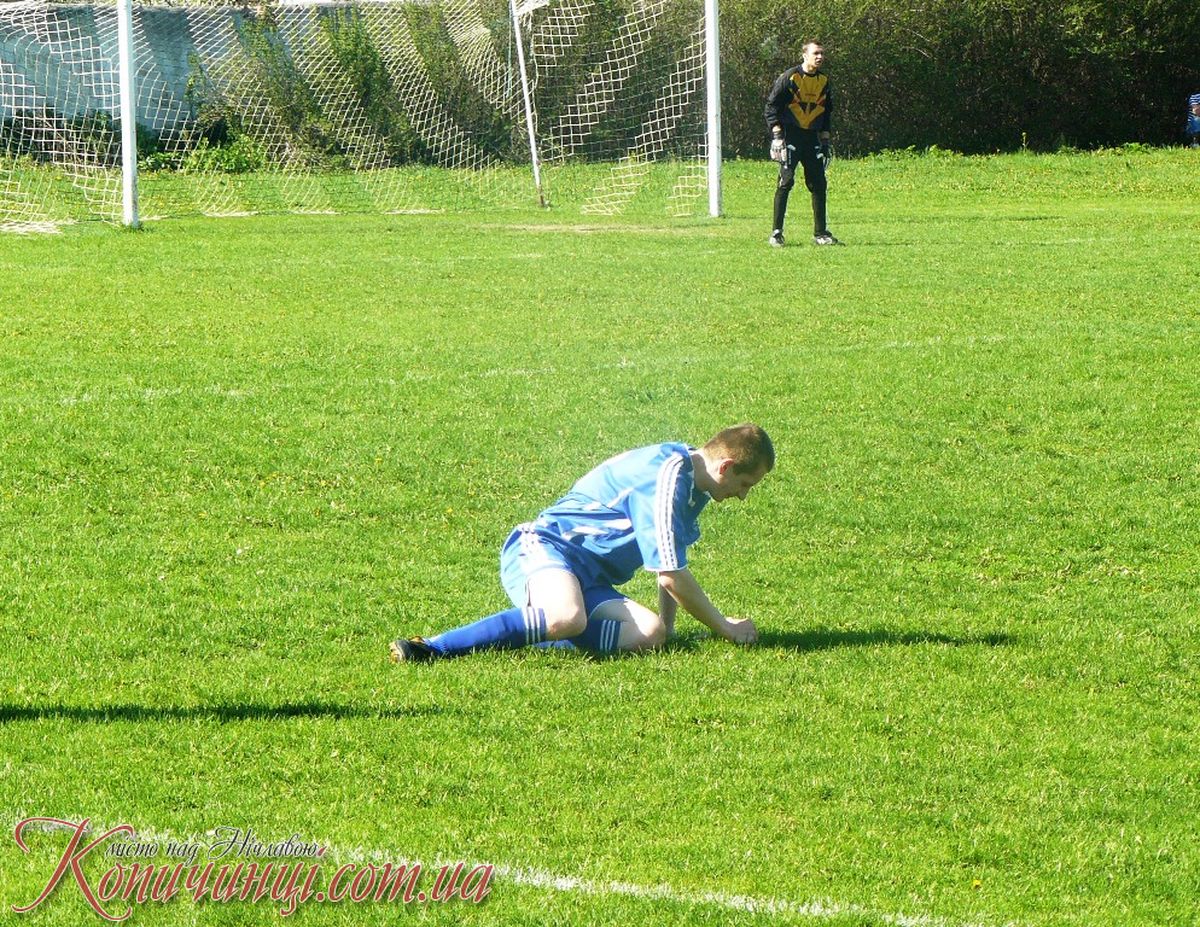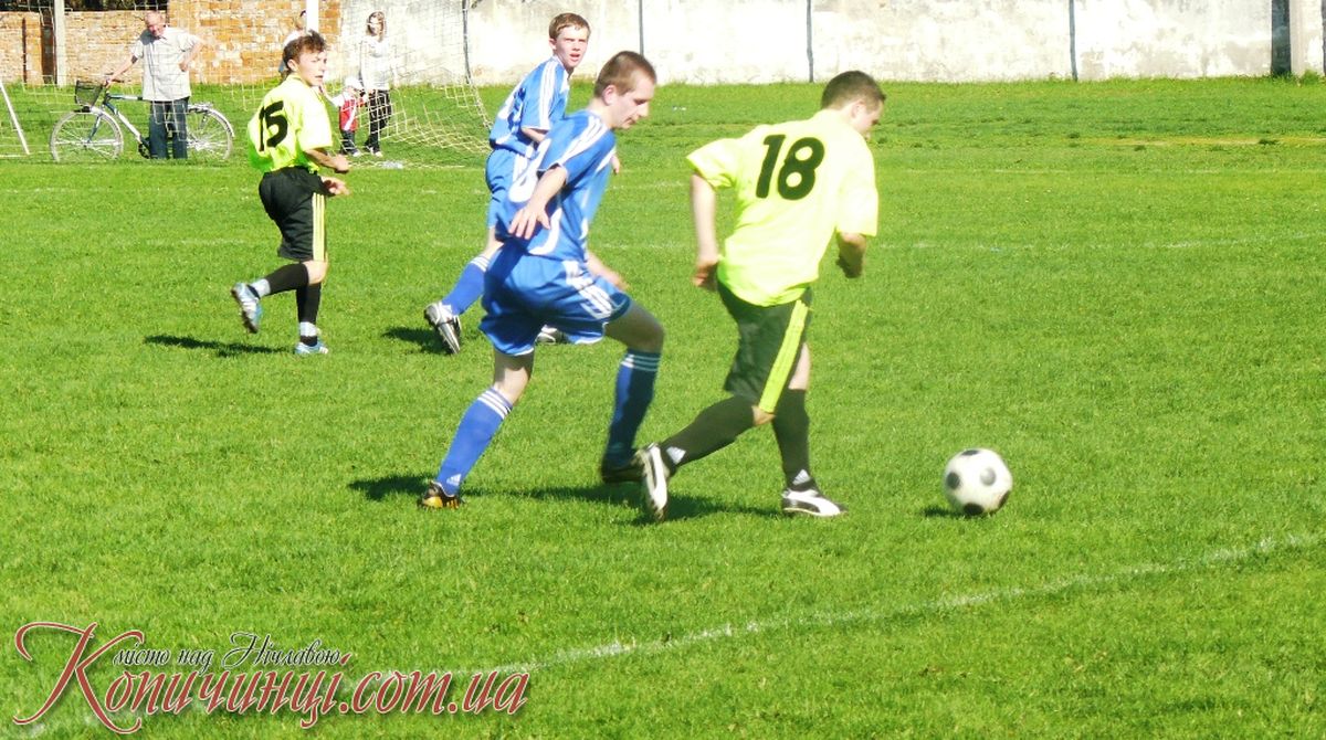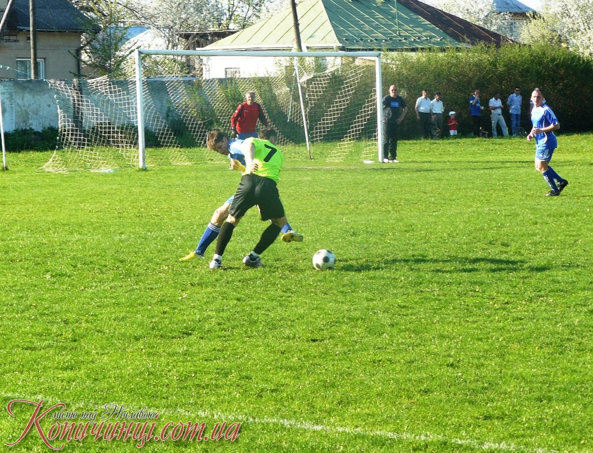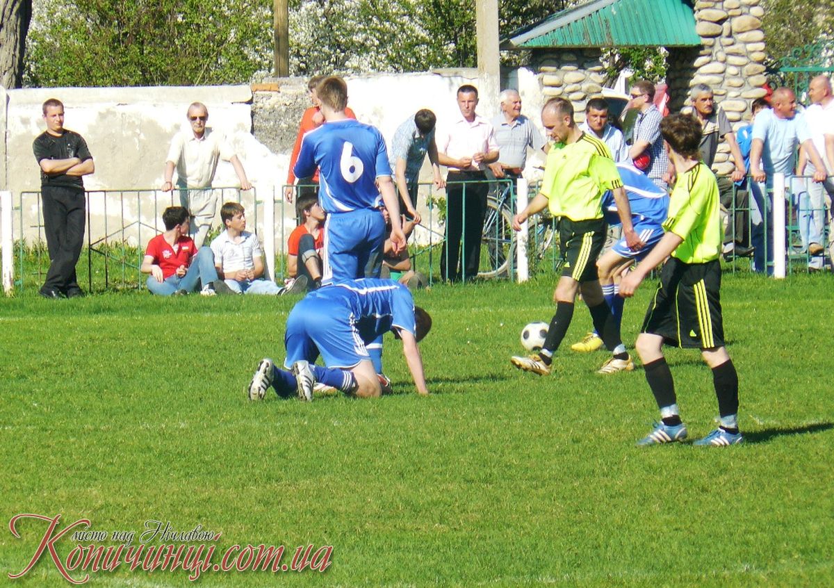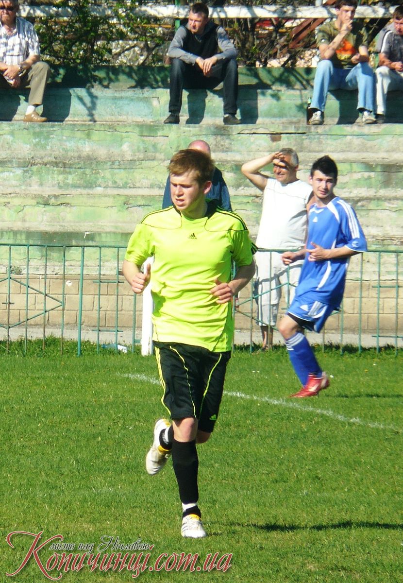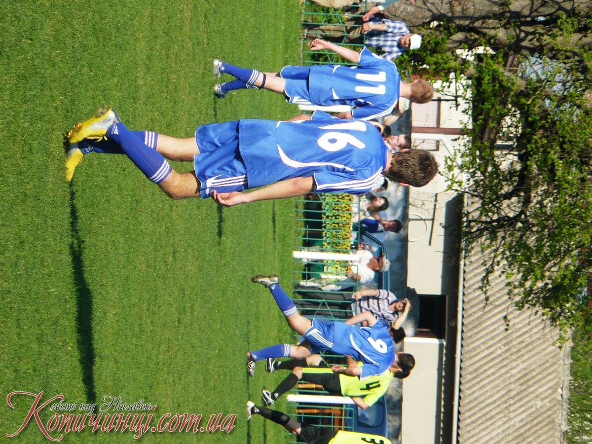 Середина першого тайму якраз принесла те, за чим виходять команди на поле, а вболівальники на трибуни – голи. Спершу, маленький за зростом, та швидкий Роман Коваль, позбувшись опіки захисників суперників, вийшов сам на сам з голкіпером і не схибив. 1:0. Після відкриття рахунку ФК Копичинці провели ще кілька гострих атак. Хорошу нагоду відзначитися мали Роман Козубський, Андрій Хоптовий, Володимир Дитиняк та інші. Однак, забили не вони, а Володимир Рогатинський, який головою відправив "круглого" в кут воріт після подачі в штрафну Вадима Гондза. 2:0. З таким рахунком команди пішли на перерву.