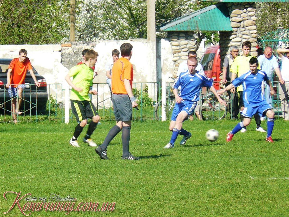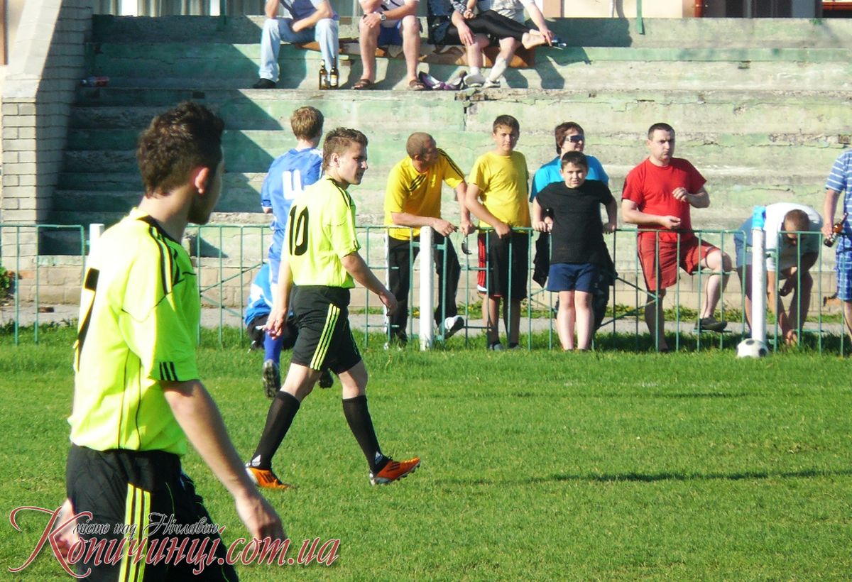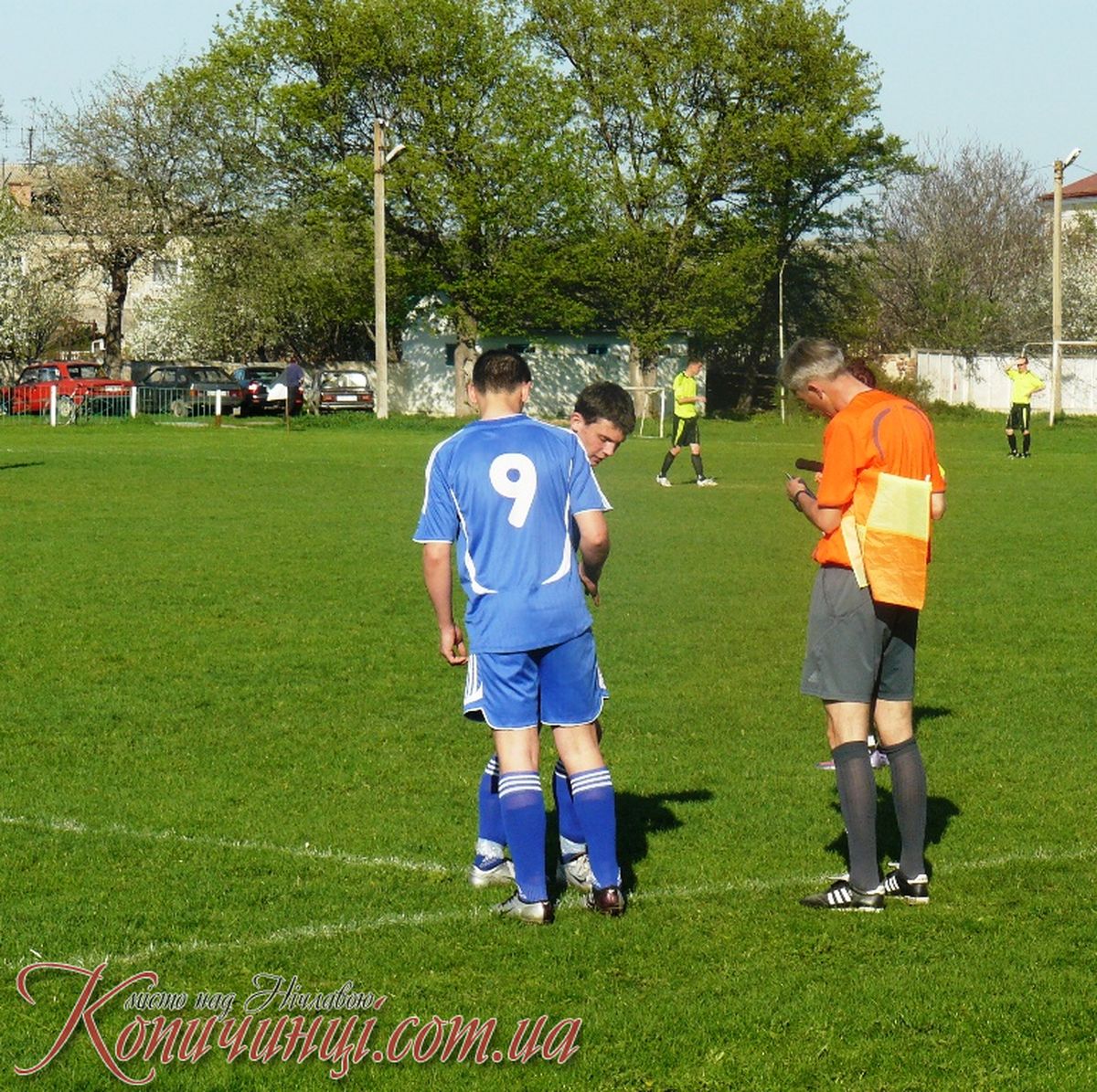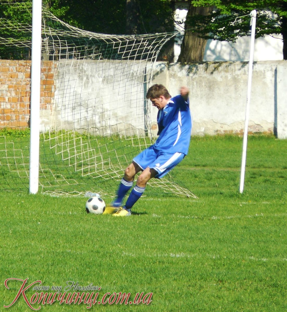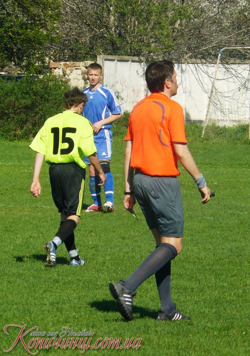 Середина першого тайму якраз принесла те, за чим виходять команди на поле, а вболівальники на трибуни – голи. Спершу, маленький за зростом, та швидкий Роман Коваль, позбувшись опіки захисників суперників, вийшов сам на сам з голкіпером і не схибив. 1:0. Після відкриття рахунку ФК Копичинці провели ще кілька гострих атак. Хорошу нагоду відзначитися мали Роман Козубський, Андрій Хоптовий, Володимир Дитиняк та інші. Однак, забили не вони, а Володимир Рогатинський, який головою відправив "круглого" в кут воріт після подачі в штрафну Вадима Гондза. 2:0. З таким рахунком команди пішли на перерву.
