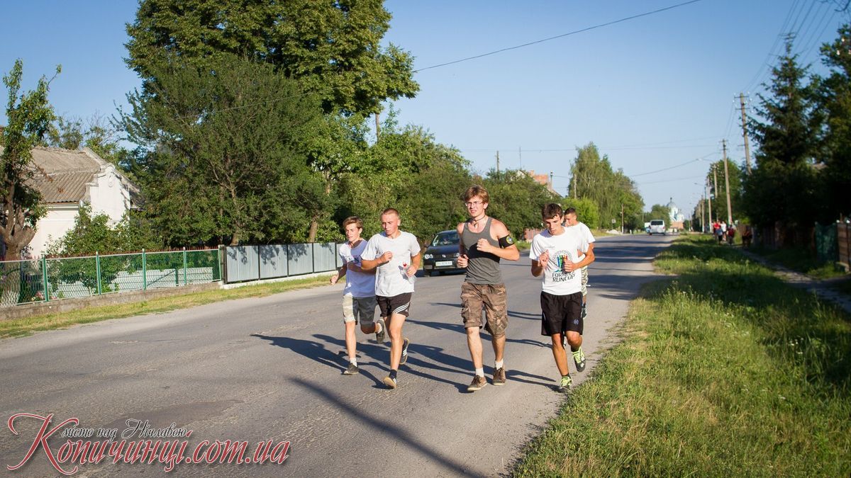 Першого липня, в неділю, в нашому місті відбулась неординарна подія. Власними силами кількох людей було організовано пробіг навколо Копичинців. Хоча зголосилось пробігти цей марафон чимало людей, проте довести справу до кінця прийшло 13 осіб, нажаль лише сильної частини людства.