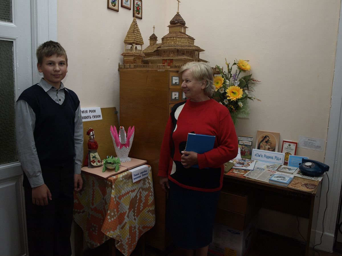 Ще одну не менш відому родину вшанували цього дня. Це родину вчительки, поетеси, першого голови Копичинецького міського товариства «Лемківщина» п. Любомири Іванків. Наголосивши про те, що творчість в родині нікуди не зникає безслідно, а трансформується в майбутніх поколіннях Турок Г.М. познайомила всіх з творчими доробками Іванкова Олекси учня 2 гімназійного класу, члена гуртка «Іграшки-сувеніри» Копичинецького центру дитячої творчості (кер. Пастушок М.М.) талановитого внука п. Любомири. Прекрасна техніка орігамі ожила в його паперових виробах: білокрилий лебідь і зелена жабка здивували всіх присутніх своєю витонченістю і досконалістю. Олекса займається не лише складанням виробів з паперу, але цікавиться і українським мистецтвом. Підтвердженням цього є лялька-мотанка представлена на виставці.