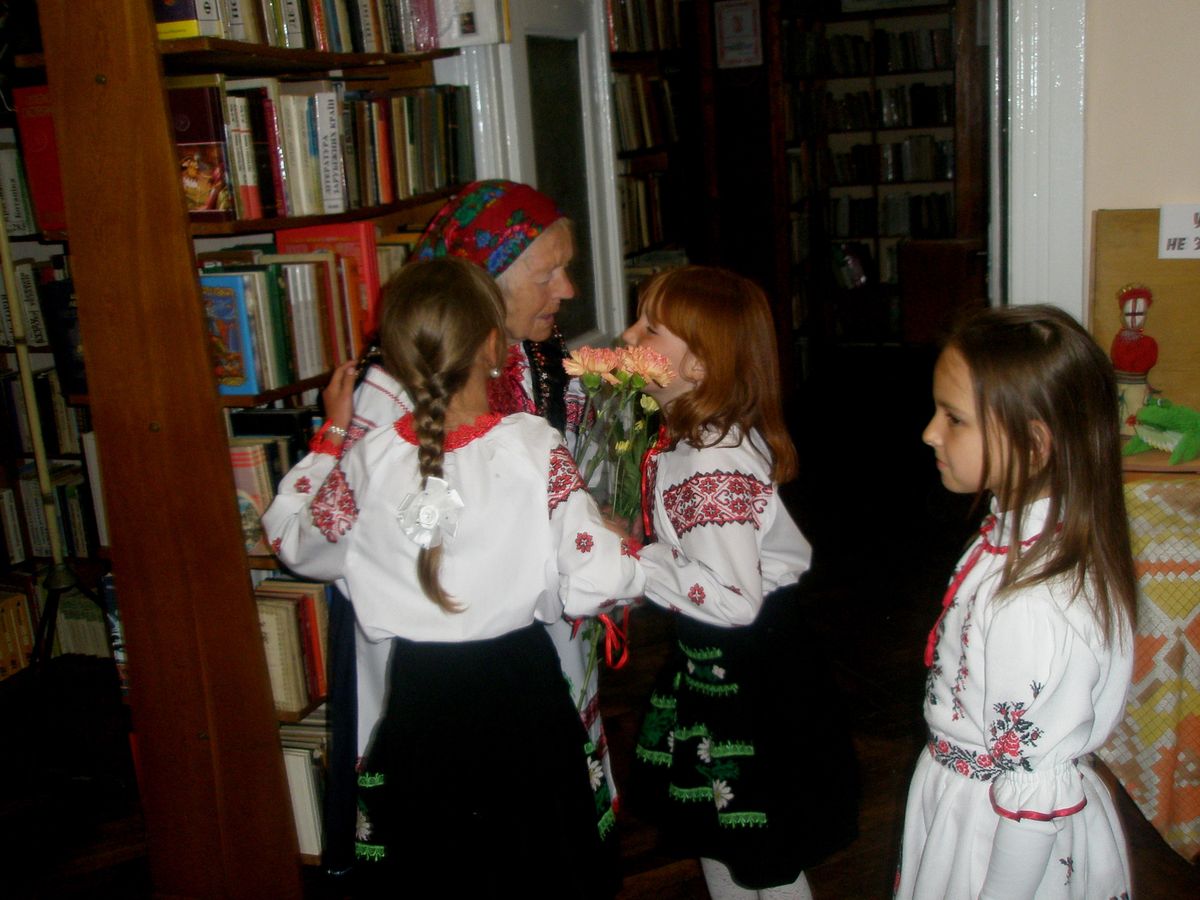 Учні 3А класу ЗОШ №2 Мартинишин Діана, Мартинишин Марія і Філатова Катя продекламували вірші про маму, заспівали в’язанку пісень про Україну, привітали всіх присутніх матерів зі святом. А найбільше засвідчили свою велику любов до найдорожчої прабабусі Марії Щетини. Режисером вітального дійства виступила їх кохана бабуся п. Люба Мартинишин. Зі сльозами радості прийняла квіти від правнуків поважна лемкиня Марія. Вітання було для неї несподіванкою. Приємно вразили своїм виступом юні артисти і всіх присутніх в залі. Щирими оплесками і солодкими дарунками вітало їх товариство.