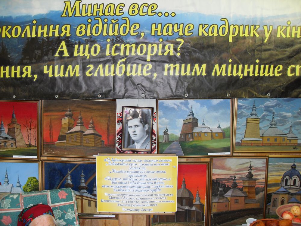 Чільне місце зайняли зображення лемківських церков відтворені на полотнах художником Михайлом Лихотою, які традиційно виставляє на фестивалі Михайло Мацієвський. Не дивлячись на те, що картини експонувалися уже третій рік поспіль, інтерес до них не спадає. В них люди бачать куточок своєї землі і щороку приводять нових відвідувачів. Макет дерев’яної церкви акцентував увагу на експозиції. Доповнювала і розкривала його змістовність книга О.В. Іванусіва «Церква в руїні», подарована Копичинецькій міській бібліотеці для дорослих родиною Голембів з Торонто (Канада).