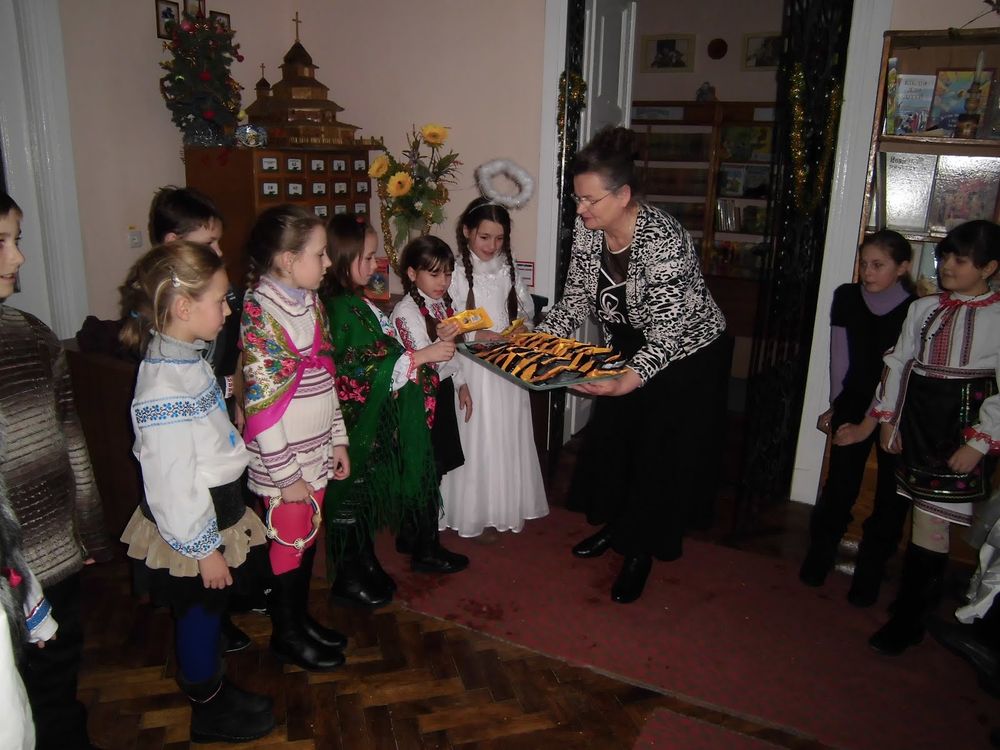 Бібліотекар абонементу Білинська Н.Я порекомендувала книги бажаючим взяти додому. А завідуюча бібліотекою Турок Г.М. щиро подякувала гостям та, як водиться за народним звичаєм, обдарувала колядників гостинцями.
