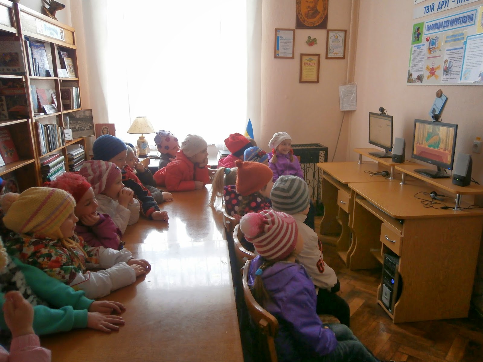 Самим цікавим етапом екскурсії став комп’ютерний зал бібліотеки, тут вони з задоволенням переглянули улюблений дітьми мультик "Маша і ведмідь".