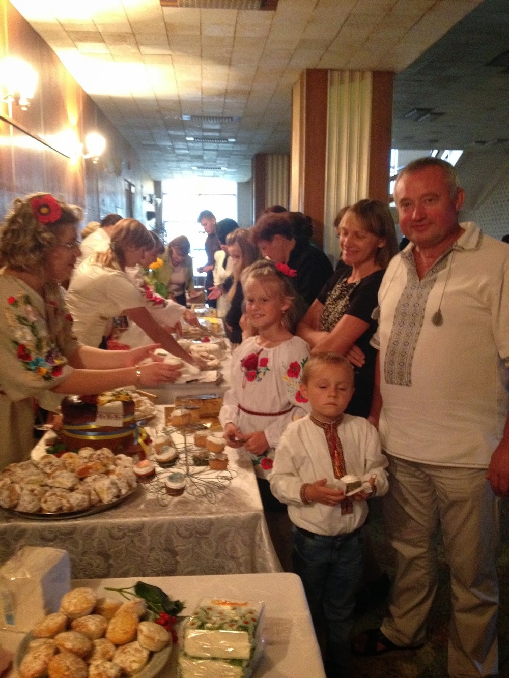 В благодійній ярмарці взяли участь майстрині-кондитери: Алла Чобіт, Оксана Ухач, Ірина Грещук, Наталя Барабаш, Оксана Негнека, Леся Дроздова. Вони спекли справжні вироби-шедеври – коровай з вишитим рушником і тризубом, торти і пляцки, оздоблені кольорами українського прапора, пряники і кекси із національною символікою та багато інших смаколиків, котрі були такі цікаві, що шкода було їх куштувати.